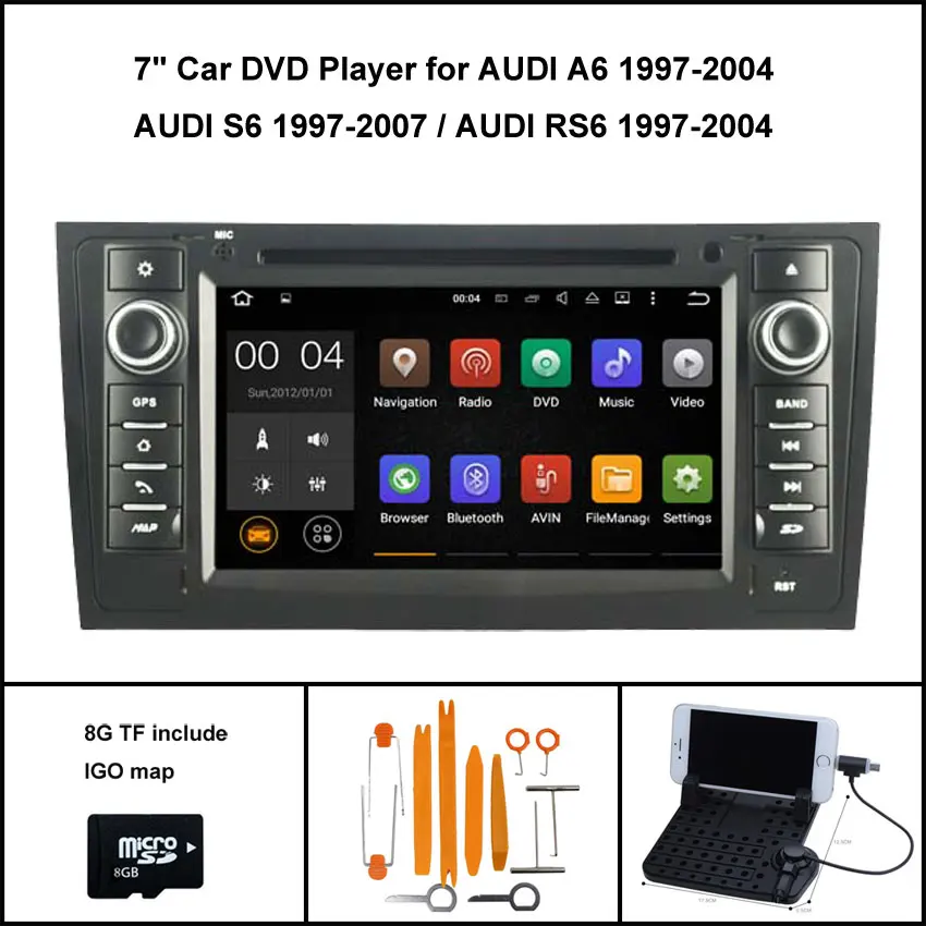 4 ядра android 7.1 автомобиль мультимедийный плеер для Audi A6 Audi S6 Audi RS6 1997-2004 аудио dvd-плеер автомобиля 1024x600 WI-FI 16 ГБ flash